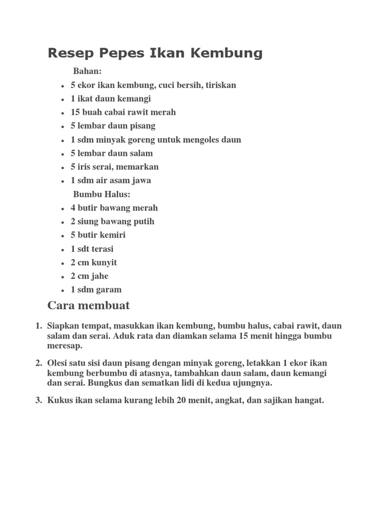 Pepes ikan kembung siap dihidangkan. Ada lagi, ikan pepes kembung daun kemangi dijual dengan harga rp 25.000,00 per satu bungkusnya. Ikan 500gr bumbu yg d haluskan: Masukan ikan yang sudah dibungkus. Contohnya seperti ikan nila, mas, kembung, patin, teri, lele dan masih banyak lagi.